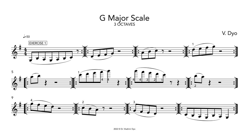 8 Exercises for G Major Scale (three octaves)